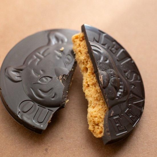 タイガーメダルクッキーズオープンからずっと人気のトラの顔がレリーフになったチョコ付きクッキー。ベルギー産のダークチョコレートと同じくベルギー産ミルクチョコレートがフランス製法のバタークッキーと相性抜群です。