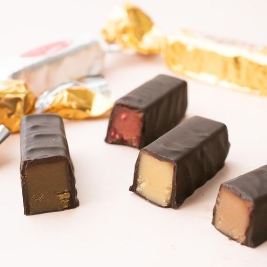 FUGDEをチョココーティングサクサクのファッジをチョコレートでコーティングしています。それにより表面のチョコレートはパリッと割れて中からサクサクのファッジ部分が顔をだし、バターと生クリームの顔おりが口いっぱいに広がります。