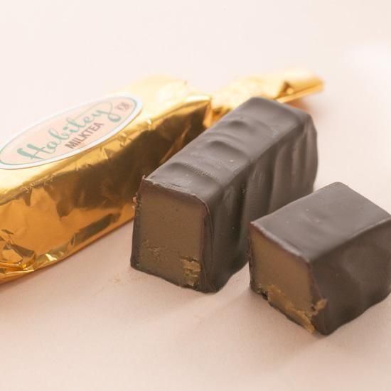 ハビティ[ミルクティ]しっかりと焙煎した紅茶の茶葉を細かく砕いてパウダー状にしました。そのパウダーをたっぷりと混ぜ込んだ天然の紅茶フレーバー。ホワイトチョコレートの風味とあいまってまるでロイヤルミルクティーのよう。